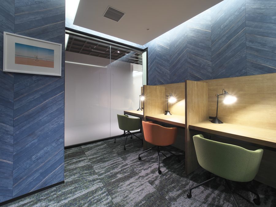 お一人様席としても利用可能。PCや携帯の充電ができる