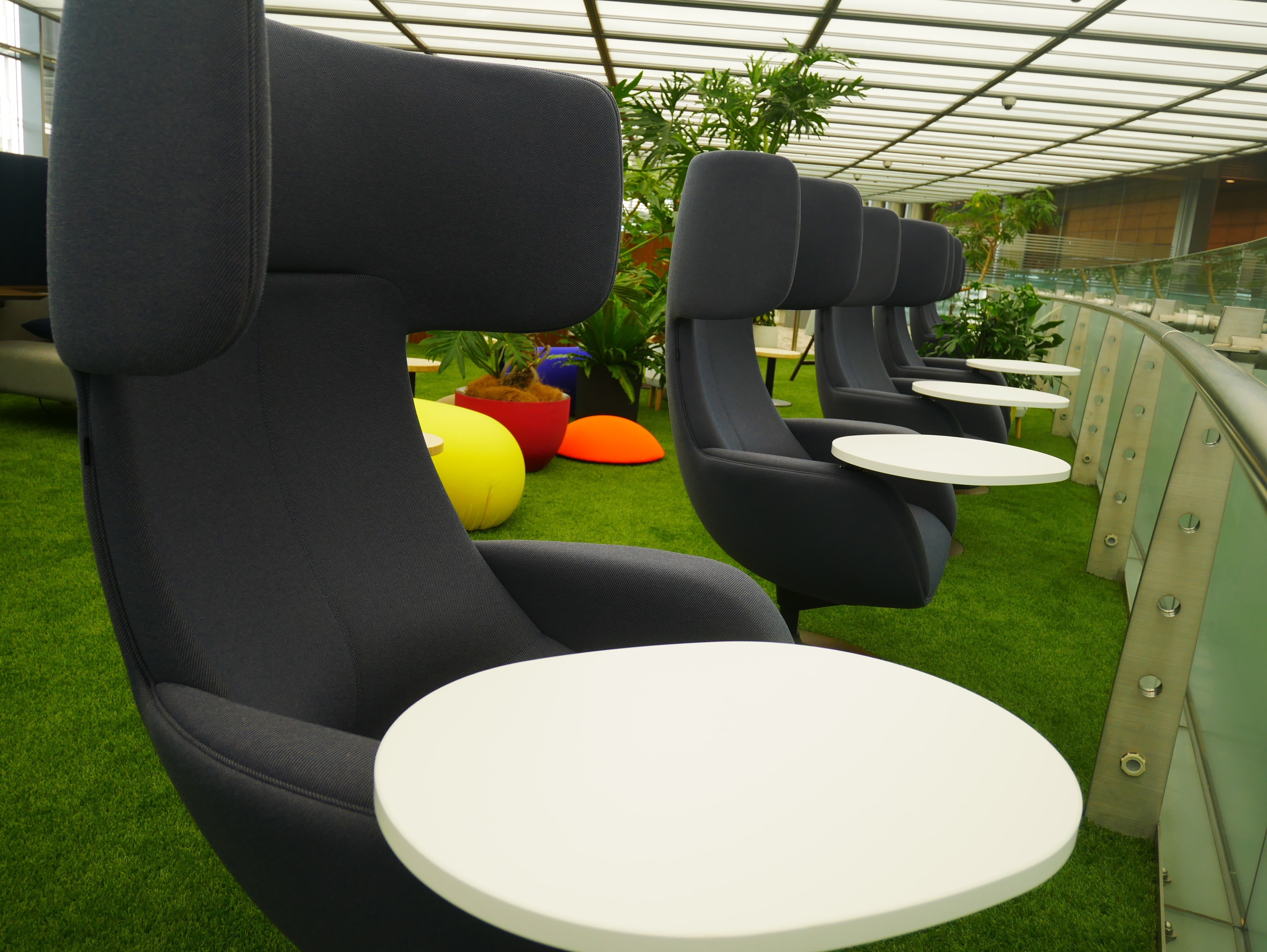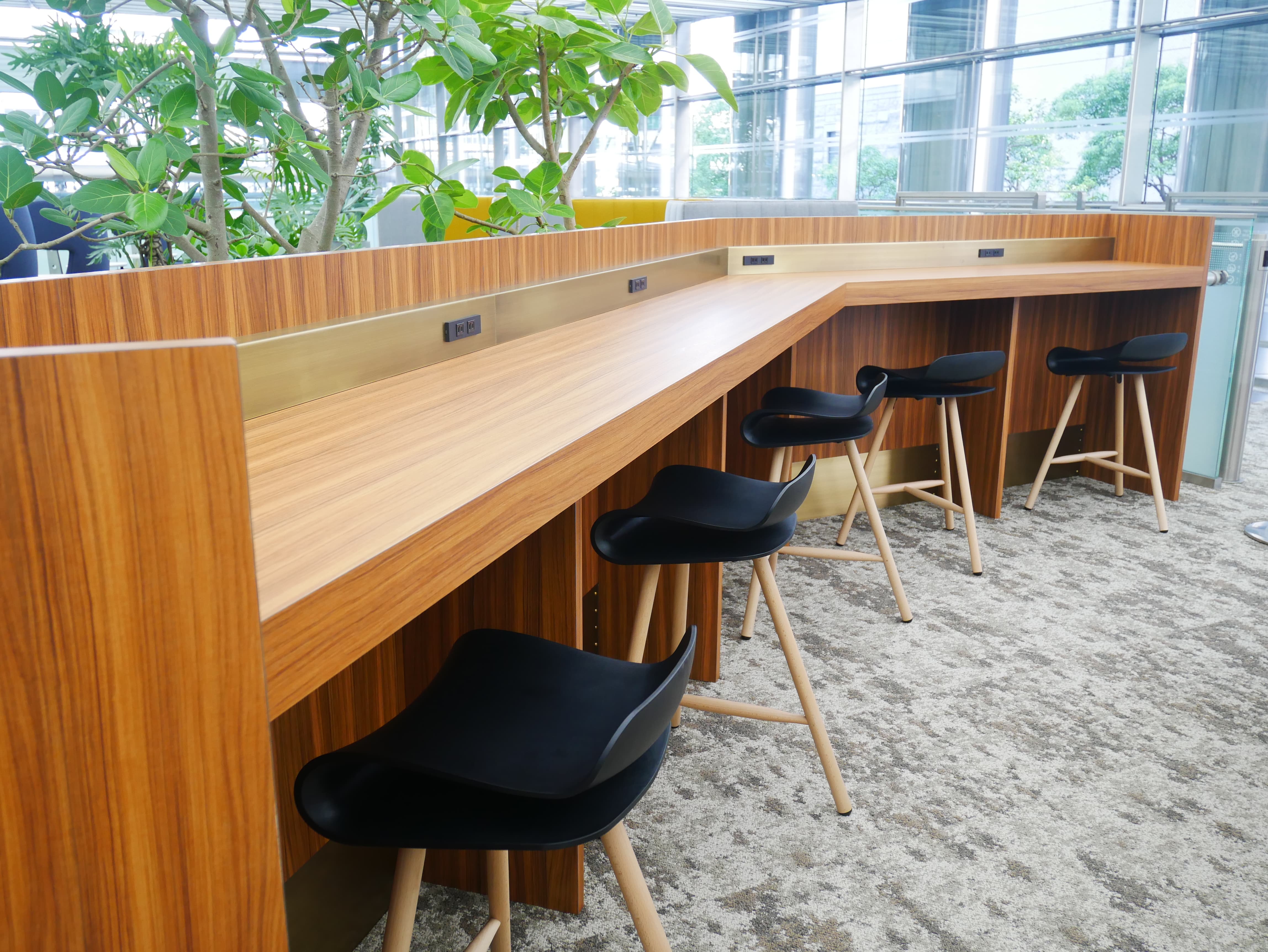 コンセント付き。植栽をふんだんに施し、リラックス効果も。