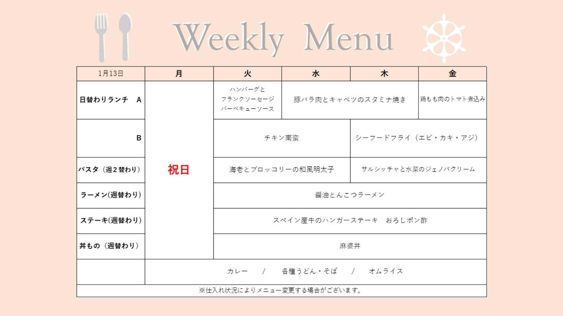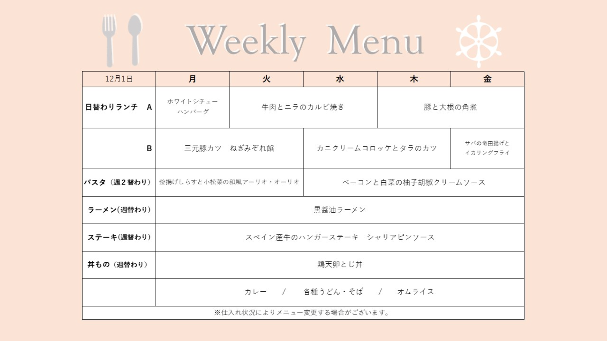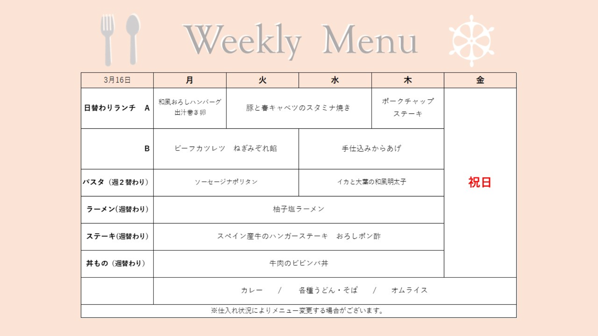 LUNCH&DINNER 週替わりメニュー